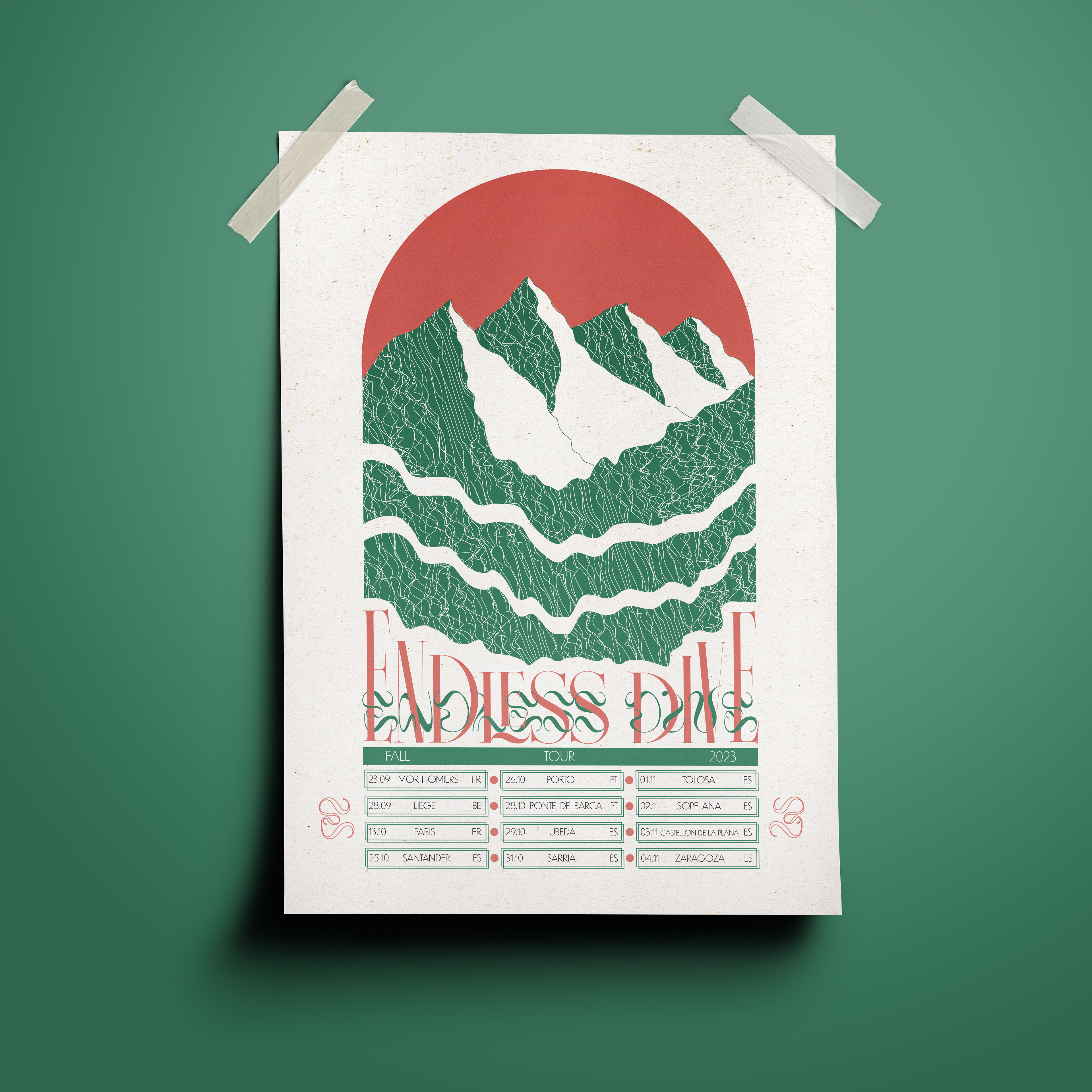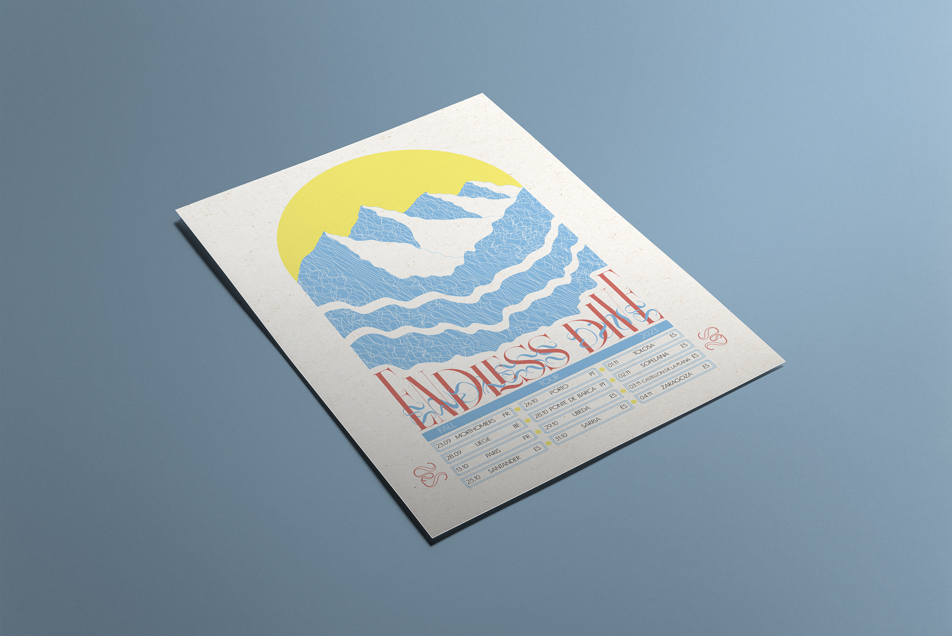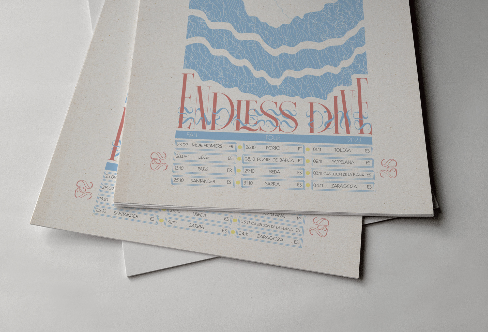 A series of silkscreen prints designed for the Belgian post-rock band Endless Dive to announce and promote their upcoming Spanish and Portuguese tour.