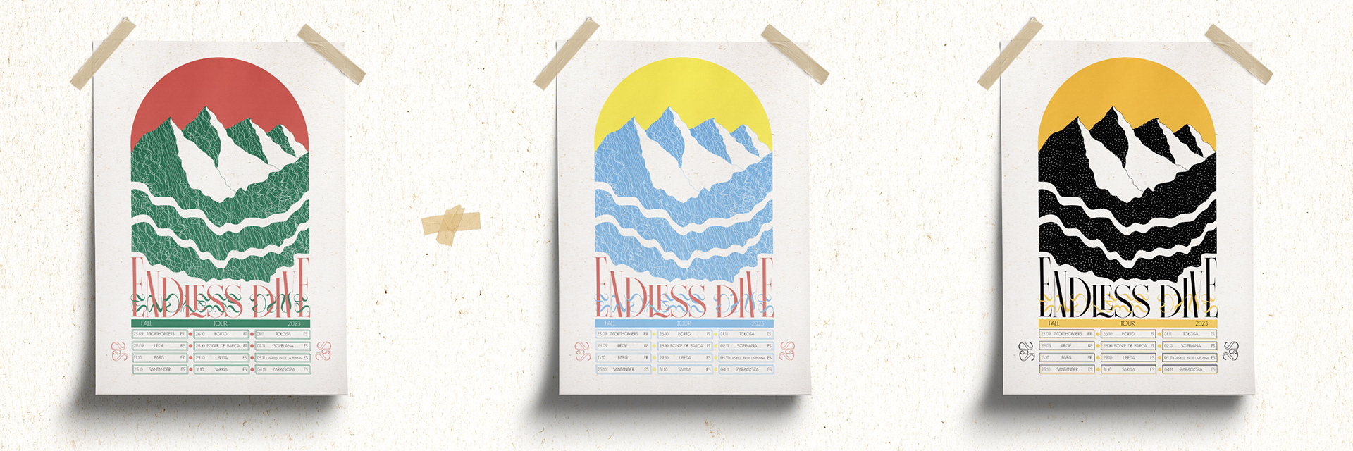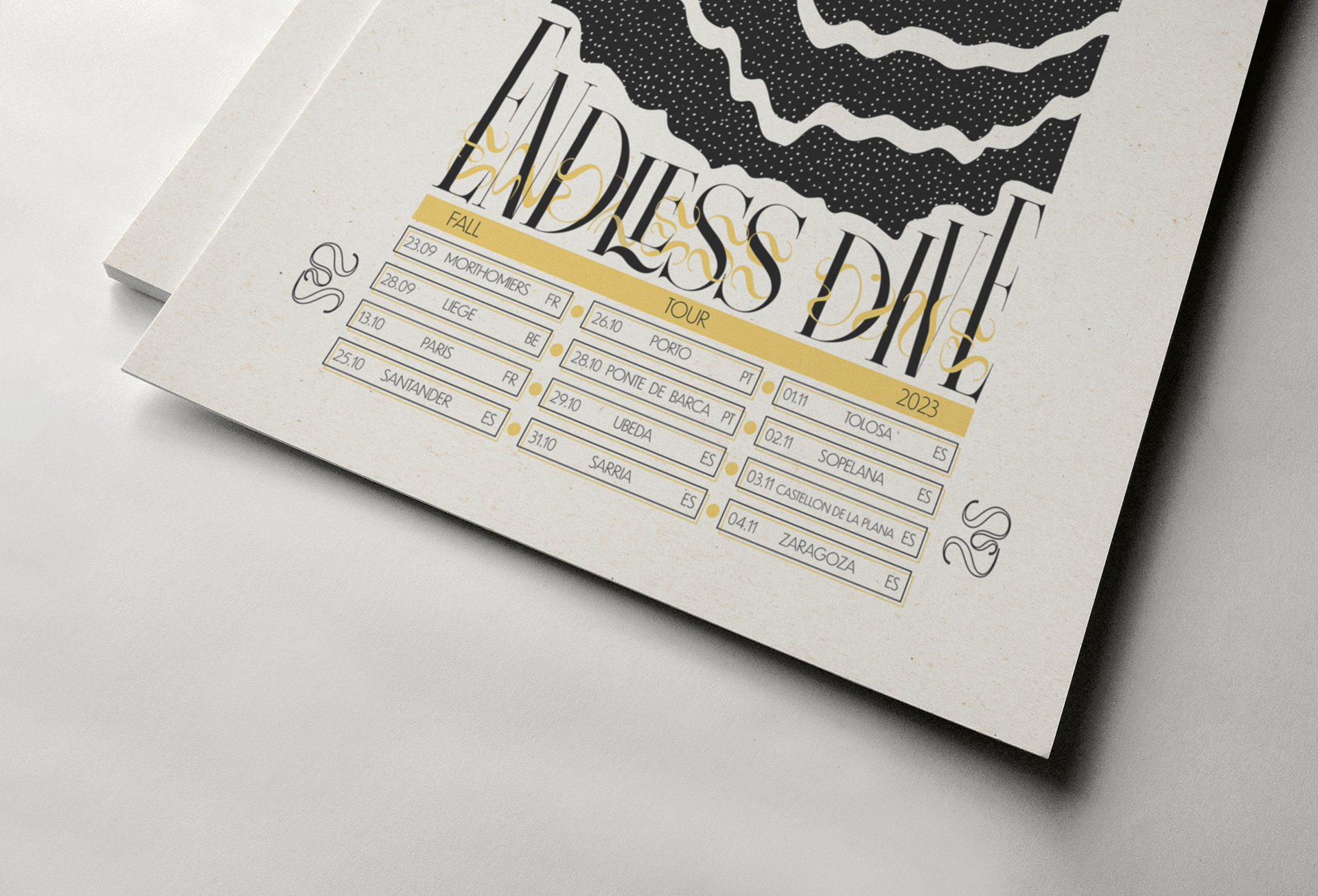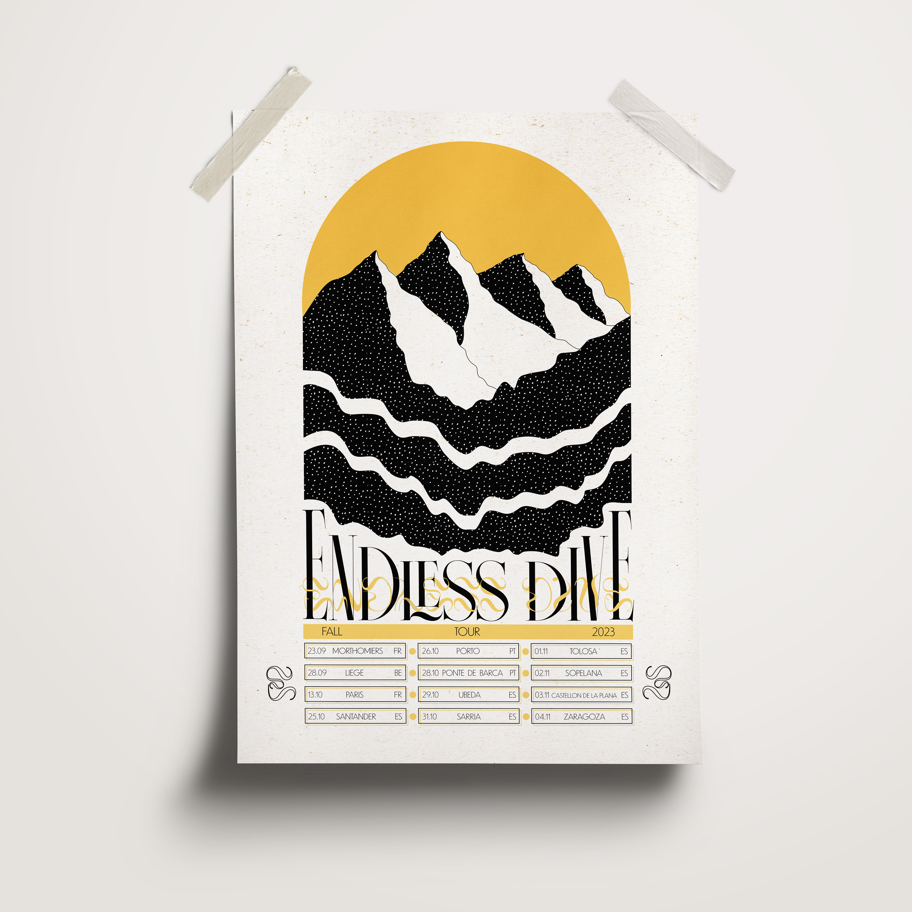 A series of silkscreen prints designed for the Belgian post-rock band Endless Dive to announce and promote their upcoming Spanish and Portuguese tour.